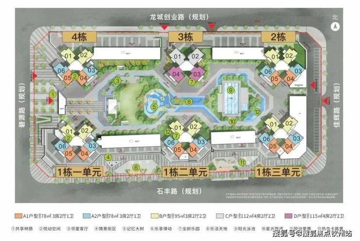项目3.65超低容积率,园林打造8大全龄生活空间,点式开放布局,平面蝶形排布,打造人与自然交互的山居复合社区。