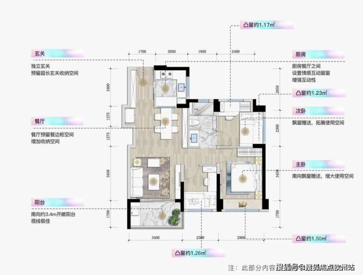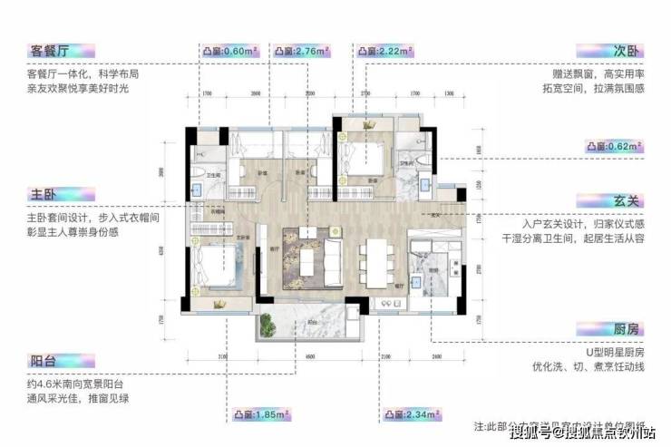 整体户型方正实用,多飘窗利用,79%超高使用率;