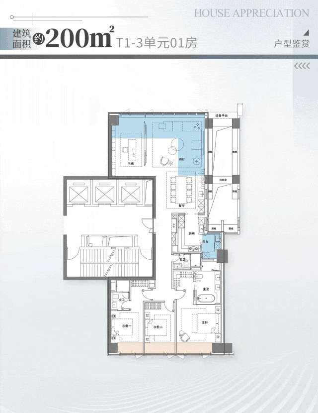 建面约200㎡奢阔大平层为例,约5.6米奢侈面宽,一线山景画卷全天候轮播,片区罕有。