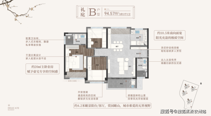 譬如建面约94㎡的神级户型,拥有超高实用率,客厅开间尺度更达到惊人的4.2米!