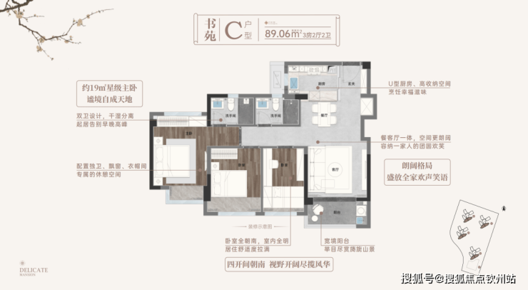 约89㎡爆款3房,客厅、卧室,4开间朝南,阔绰尺度令全城羡慕。2卫的设计,更满足全家人的居住需求。