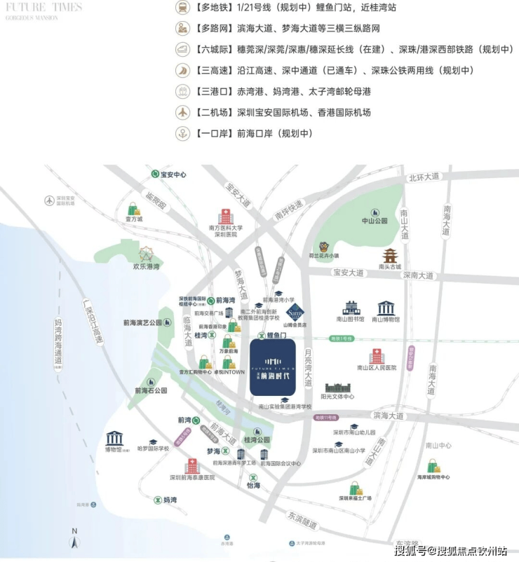 路网交通方面,项目紧邻月亮湾大道、滨海隧道、梦海大道连接前湾、妈湾、宝安中心,出行便利。