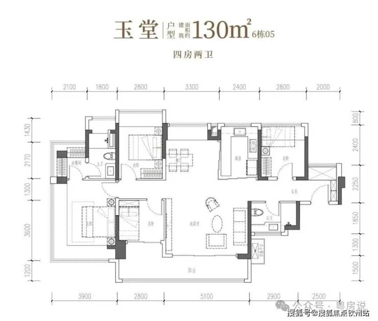 四开间IMAX光幕引景入室,以LDKB家庭聚场升温情感,更以双转角主卧套房,礼献一方休憩殿堂。• 玉堂·建面约130㎡4房2厅2卫:南向四开间,约14.7米IMAX光幕,尺度自成