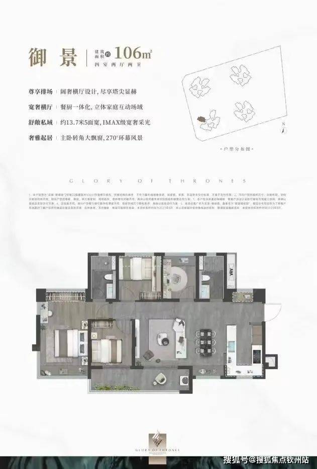 设计的是横厅南北通透格局,客餐厅开间8米,约14.7米超幕视野,超长阳台,主卧转角270°大飘窗,U型厨房,得房率:78.99%(不含赠送),阳台主朝西南或东南向。