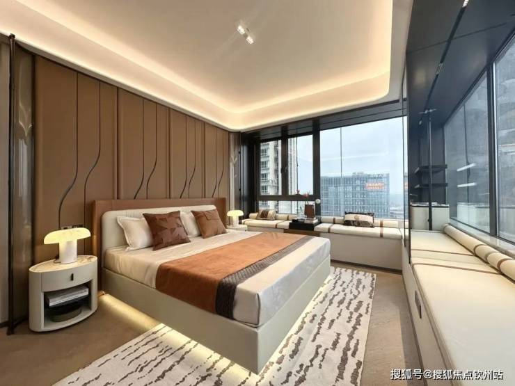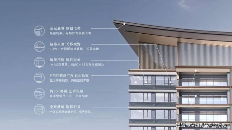 ▻南向超80%窗墙比丨▻大面双层LOW-E玻璃丨▻35°斜切香槟金铝板