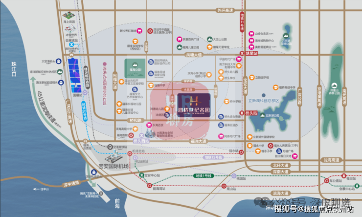 铁(高铁):临近的福海西站以及深圳机场站,可直接搭乘穗深城际铁路前往广州等地,深圳机场站将成为湾区内联外通的一个交通集散地。