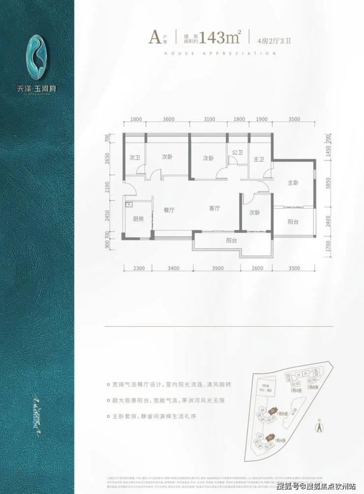 V型塔楼布局,南向阳光户型,约80%高实用率,双阳台,光明罕有绝版户型。建面约80-143㎡河岸美宅,赠送高标准绿建简装,向往的生活在这里触手可及。天泽·玉河府 售楼处电话:400 006 8087