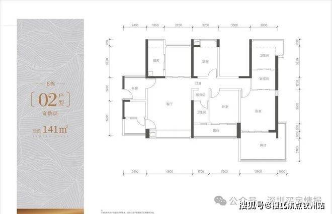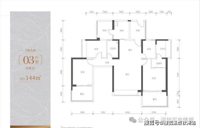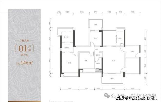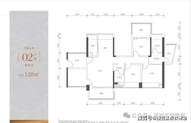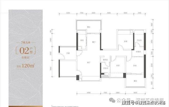 7栋A座02户型双数层120平4房(侧面外露阳台)