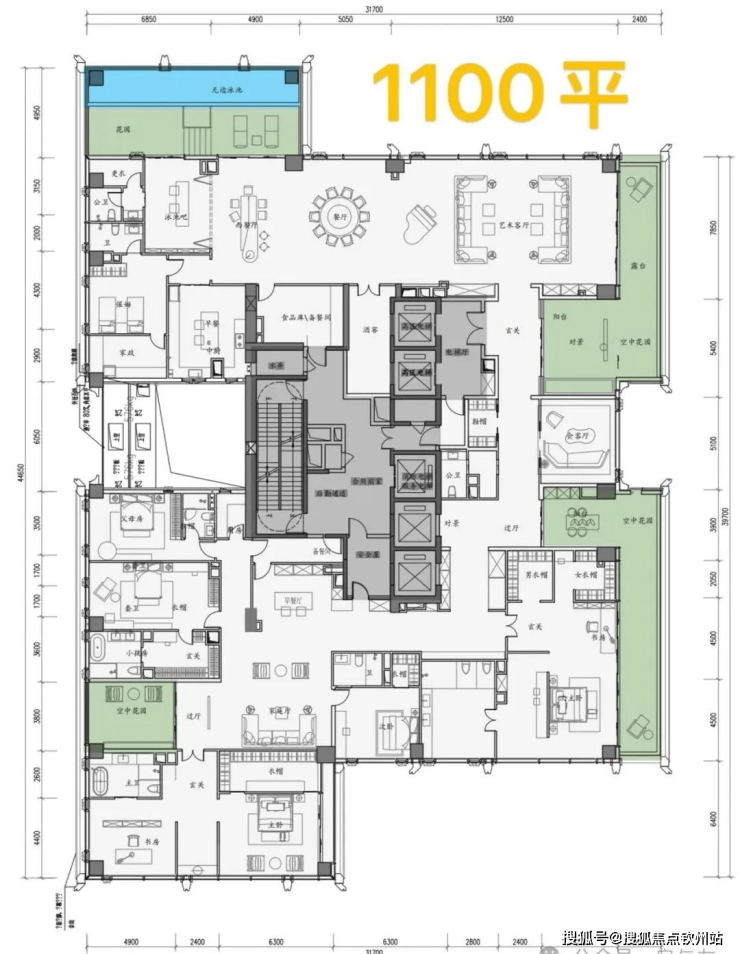 ④顶楼整层不是复式,约1100㎡顶奢大平层仅两套