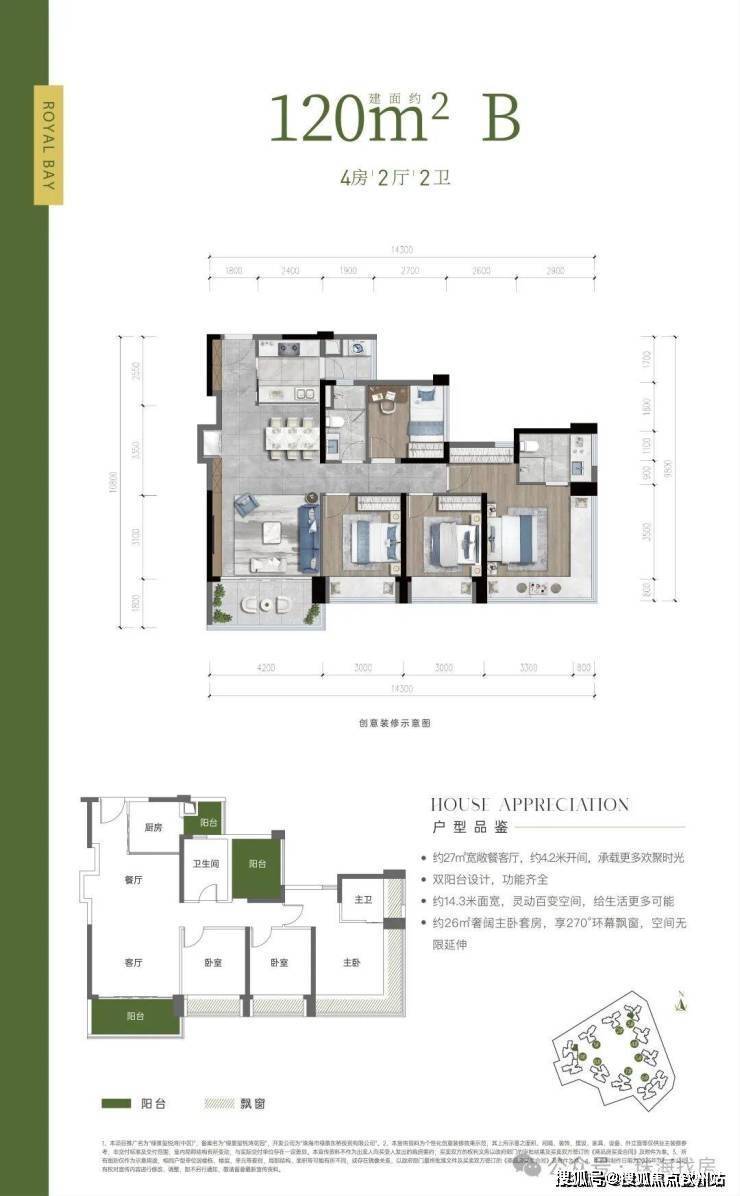 户型亮点:约 14.3 米南向面宽,灵动百变空间,给生活更多可能