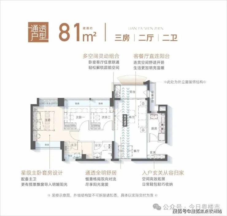 81㎡户型是红山稀缺三房两厅两卫户型,格局方正,一步到位满足全家人居住;