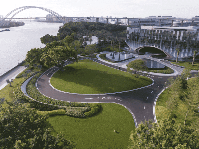 高低错落的景观层次丰富,绿篱与乌桕、铁冬青等树种相互映衬,带来极大视觉享受。