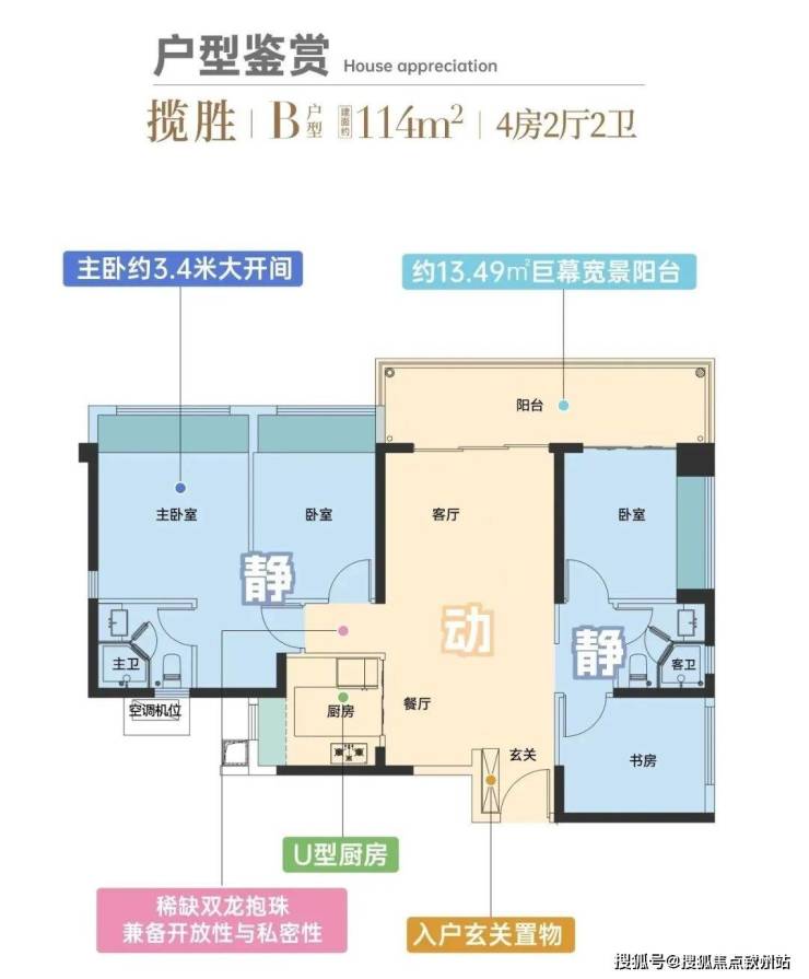 约13.5平景观阳台,约3.4米大开间主卧套房...心动价值一一被点亮。