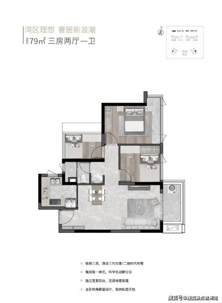 高得房率:来自深圳的爆款户型,79㎡3房1卫、89㎡3房2卫、105㎡4房2卫,全周期户型,90%以上超高得房率。