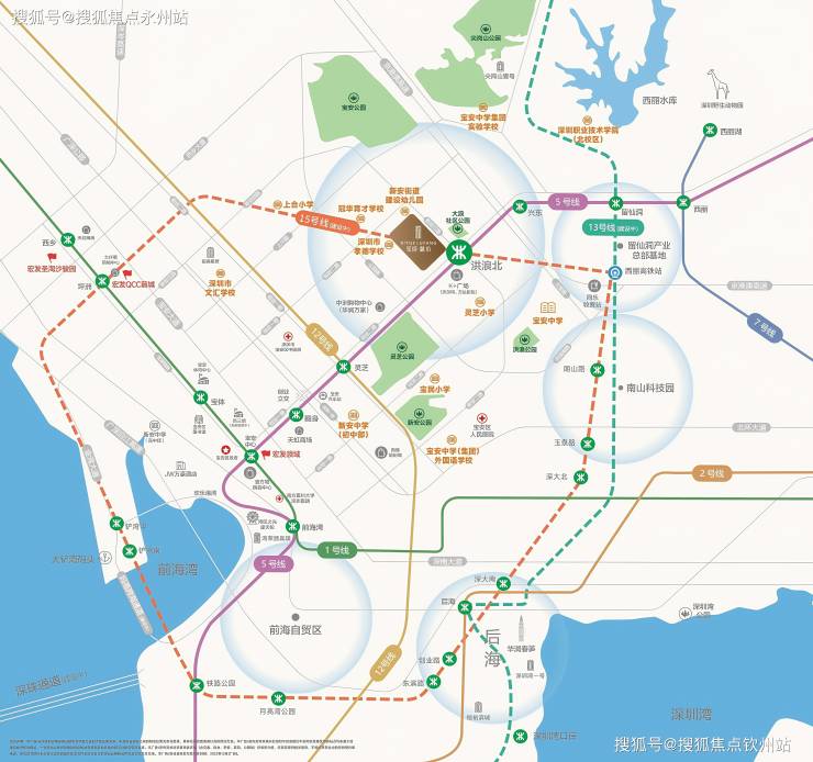 地铁15号线:起于西乡、终至前海,串联南山西丽、科技园、大铲湾片区,打造前海内环黄金圈。