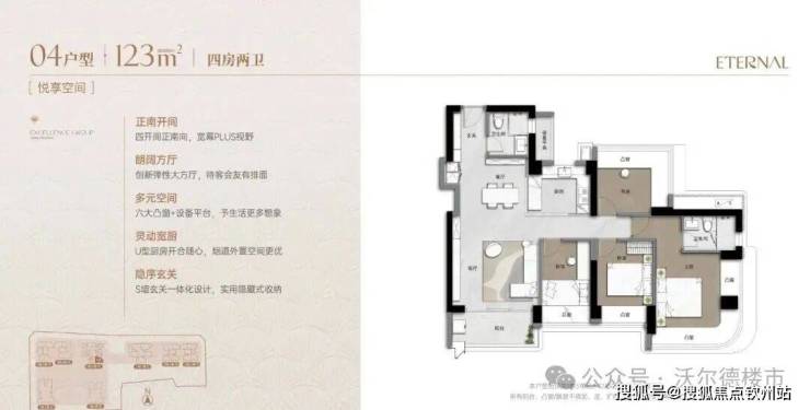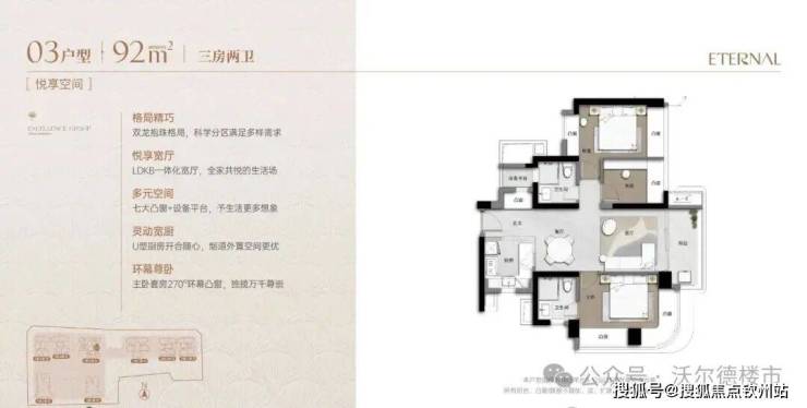超高使用率(90%+):通过“弹性方厅”(可变空间)、设备平台外拓、多飘窗实现。