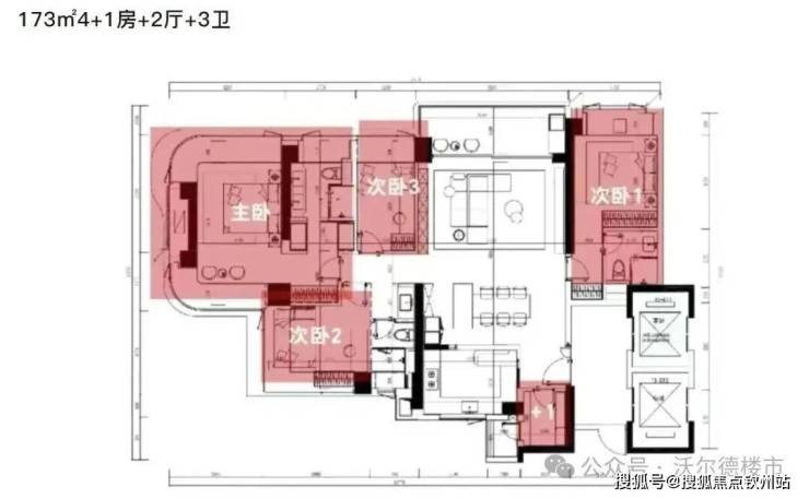 梯户比优化:北区大户型(如173㎡)采用2梯2户专梯入户,南区3梯4户,接近1:1比例,减少候梯时间。