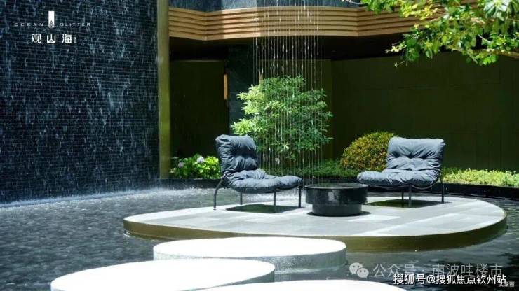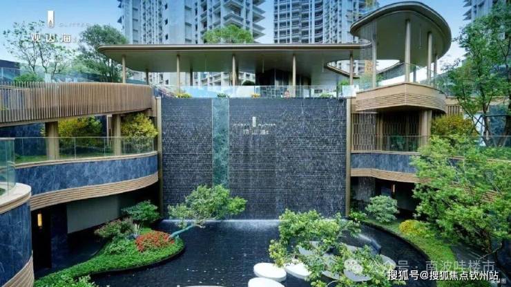 项目打造的近9米水庭院瀑布实景绽放。论形制、论规模,这处园林造景在前海乃至整个深圳都很罕见!