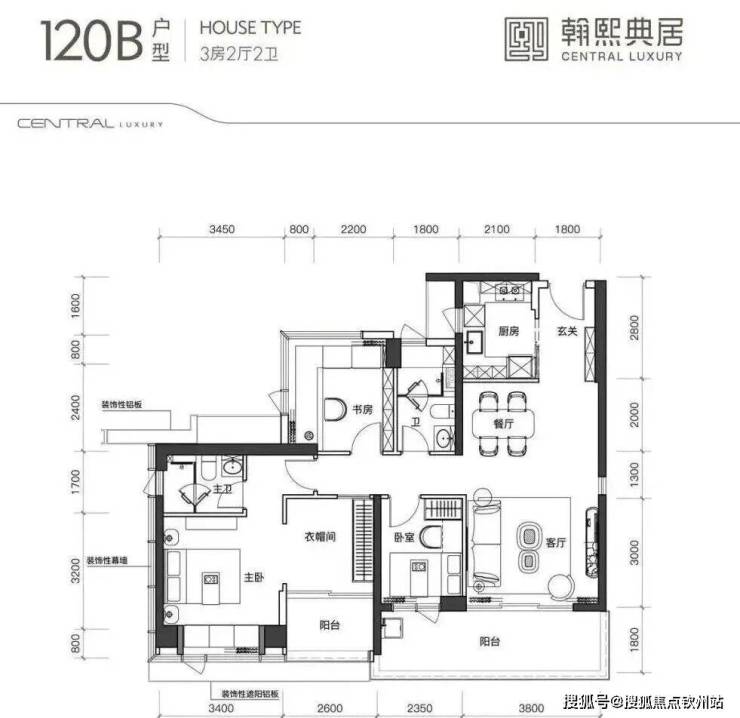 建面约120㎡的3+1房2厅2卫,