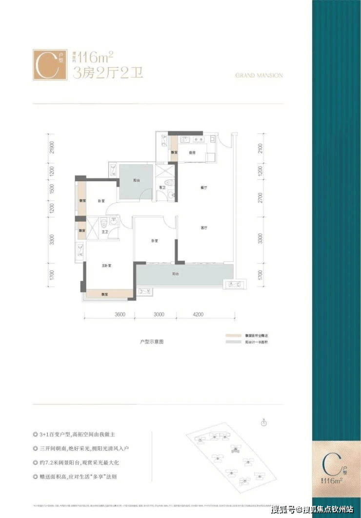 户型优势:赠送约16方,全南户型,拥有7.2米超大阳台,四房设计户型方正,主卧突出视野更佳。