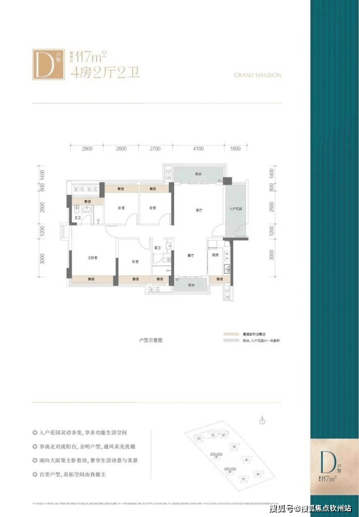 户型优势:赠送约17方,双阳台南北对流,多功能入户花园,可做5.8米开间大横厅