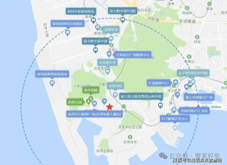 不过,地块周边的教育、商业、医疗配套仍有提升空间。3km 范围内的配套资源包括赤湾学校、月亮湾小学、太子湾学校、深大附中(教育),K11 购物艺术中心、海上世界船头广场、嘉盛荟商业中心、泛海城市广场(商业)等。