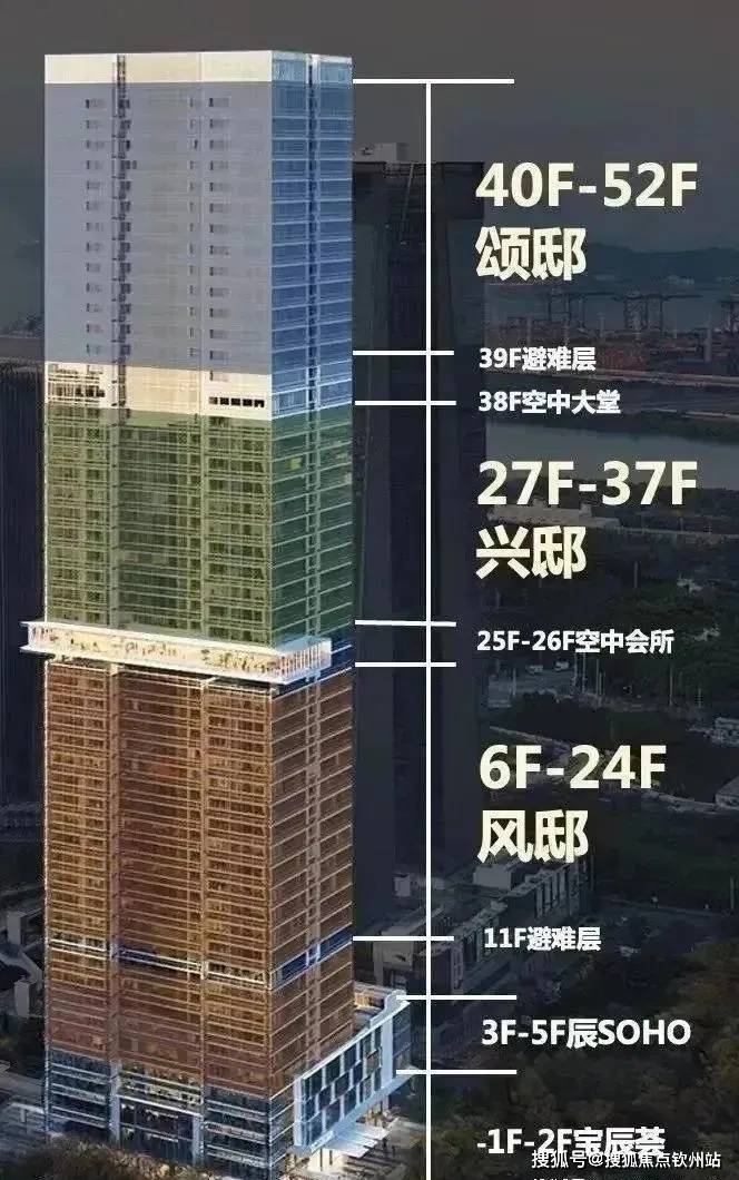 天幕藏品,总建面约8.6万㎡,主打建面约125-280㎡天幕藏品,分布在楼层的中区、高区、超高区,分别命名为风邸(6-24F)、兴邸(27-37F)和颂邸(40-52F)。
