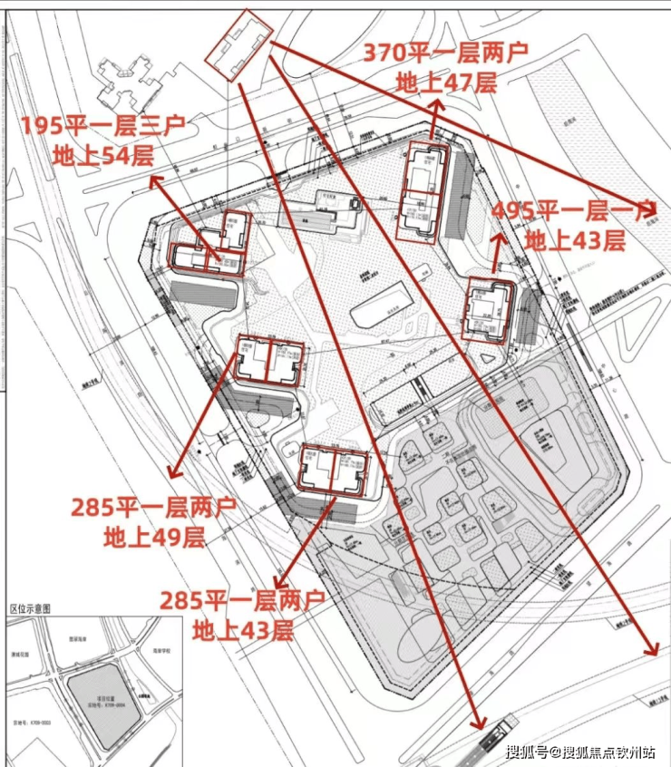 项目将建5栋超高层,包括1栋A座43层、1栋B座47层、1栋C座54层、1栋D座49层以及1栋E座43层,规划停车位938辆。