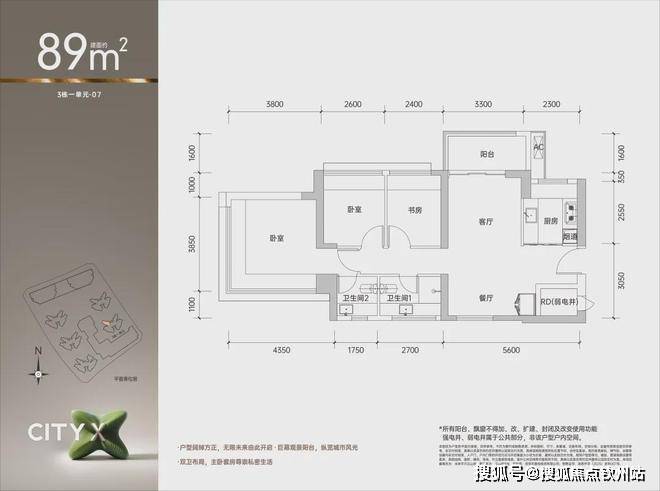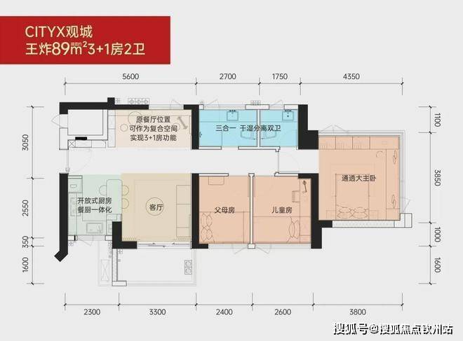 王炸户型 约89㎡3+1房两厅两卫