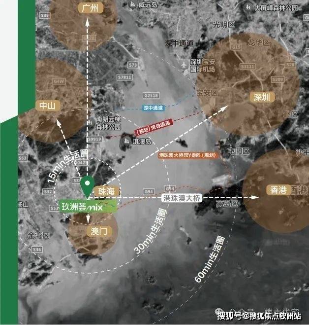 3口岸,咫尺即达拱北/青茂/港珠澳3大口岸,10分钟澳门;粤港澳大湾区超级交通枢纽。1大桥,3km接驳港澳珠澳大桥,通过港珠澳大桥40分钟直达香港。