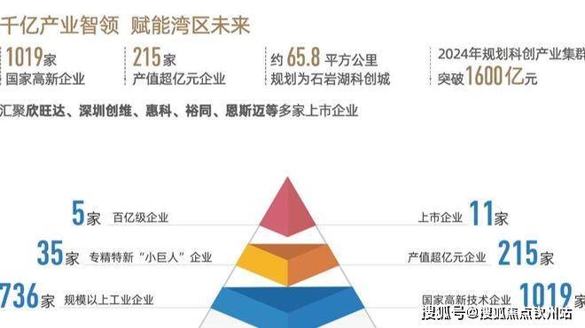 石岩科创城(规划面积65.8万平方公里)汇聚高端科技资源,驱动产业升级,形成产业集群效应,成为推动区域经济高质量发展的关键引擎。在2024年已汇集超过1019家国家高新技术企业,拥有215家产值超亿元企业,已汇聚欣旺达、深圳创维、惠科、裕同、恩斯迈等11家上市企业,规划科创产业集群突破1600亿元。