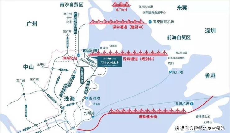 3通道:深中通道(建设中,预计2024年建成通车)、深珠通道(规划中)及港珠澳大桥(已通车)。据媒体报道,深珠通道通车后,唐家到深圳前海只需30分钟。