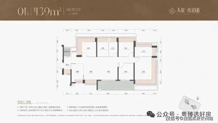 139平4房户型,同样以朝南、西南朝向为主,能够享受良好的采光和海景、山景资源。
