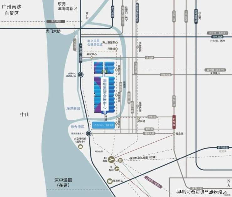 🏔29平方公里会展新城—珠三角广深港发展走廊核心,由“三城一港”构成—国际会展城、海洋新城、会展田园城和综合港区,打造