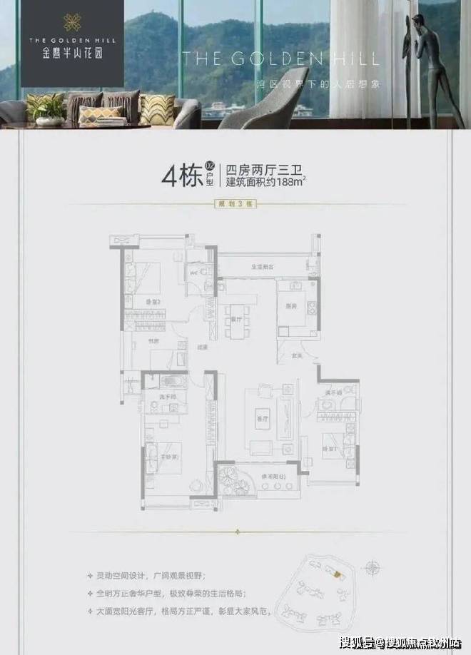 01户型:188㎡,4房2厅3卫(南北对流,售罄)