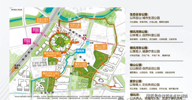 5大公园融入社区,起步即城市级公建,造就超越当代的都市活力地标环;统合历史文脉、自然山水、城市建设、多元业态,构建全生命周期的城市中心理想典范