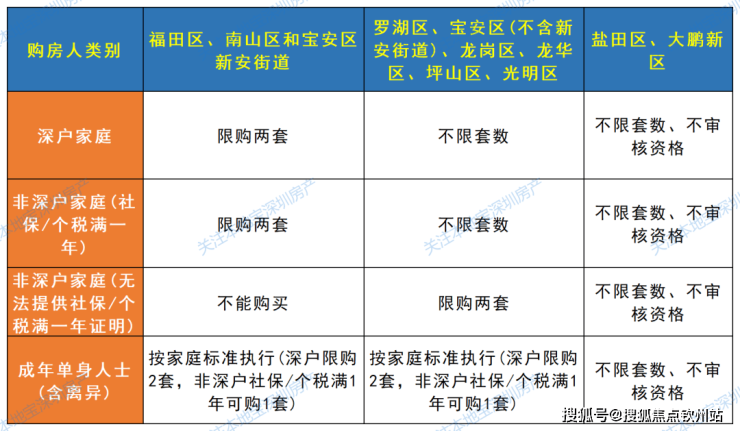 深圳户籍居民家庭限购2套、在深圳连续缴纳社会保险或个人所得税满1年及以上的非深圳户籍居民家庭限购1套。