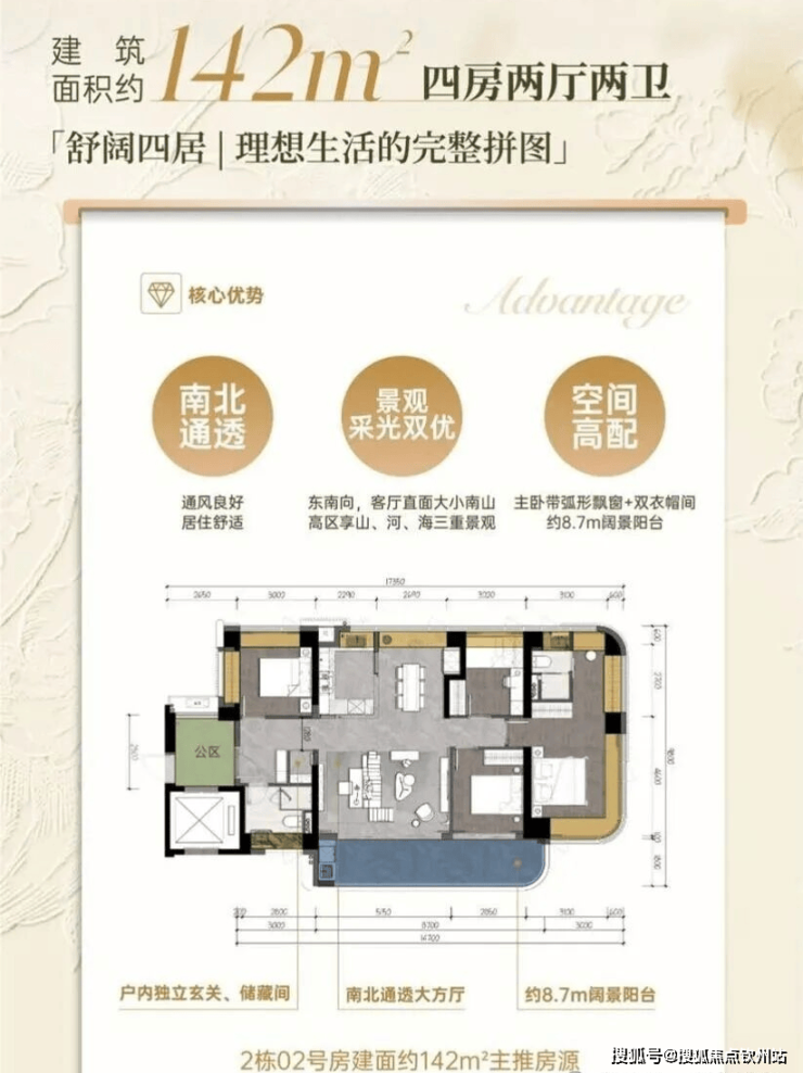 梯户比例:4梯5户,分布式电梯设计,独立电梯厅