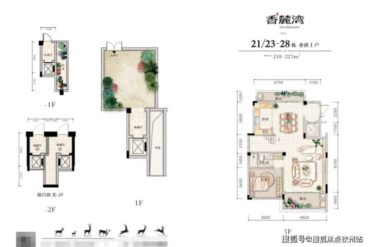在售户型面积:叠拼182㎡ 3房2厅3卫,