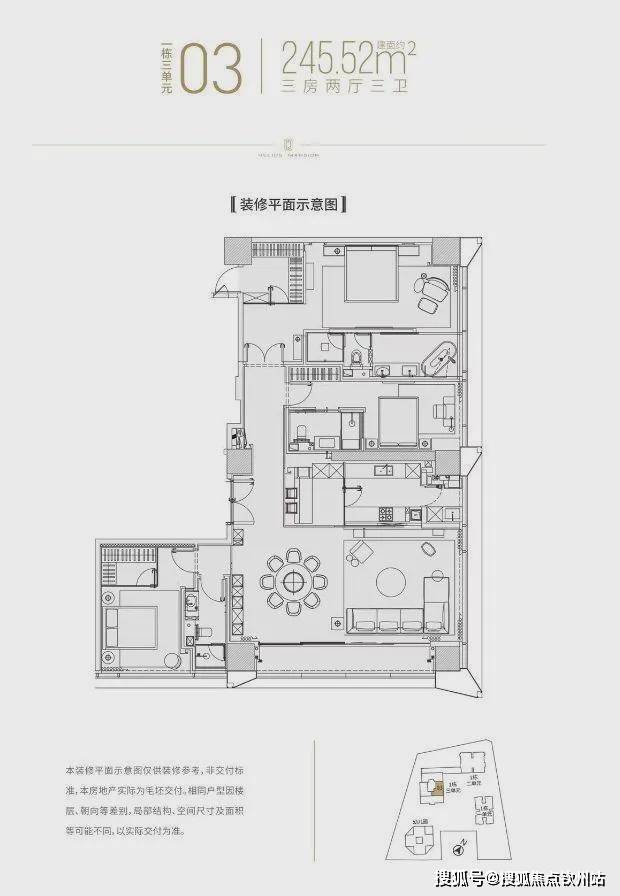 3栋由酒店、商务公寓、人才住房组成,40层加地下4层(含一层半地下室)楼高172.85米。本期销售住宅有260户,其中户型套内建筑面积小于90㎡为230套,占比88.46%。