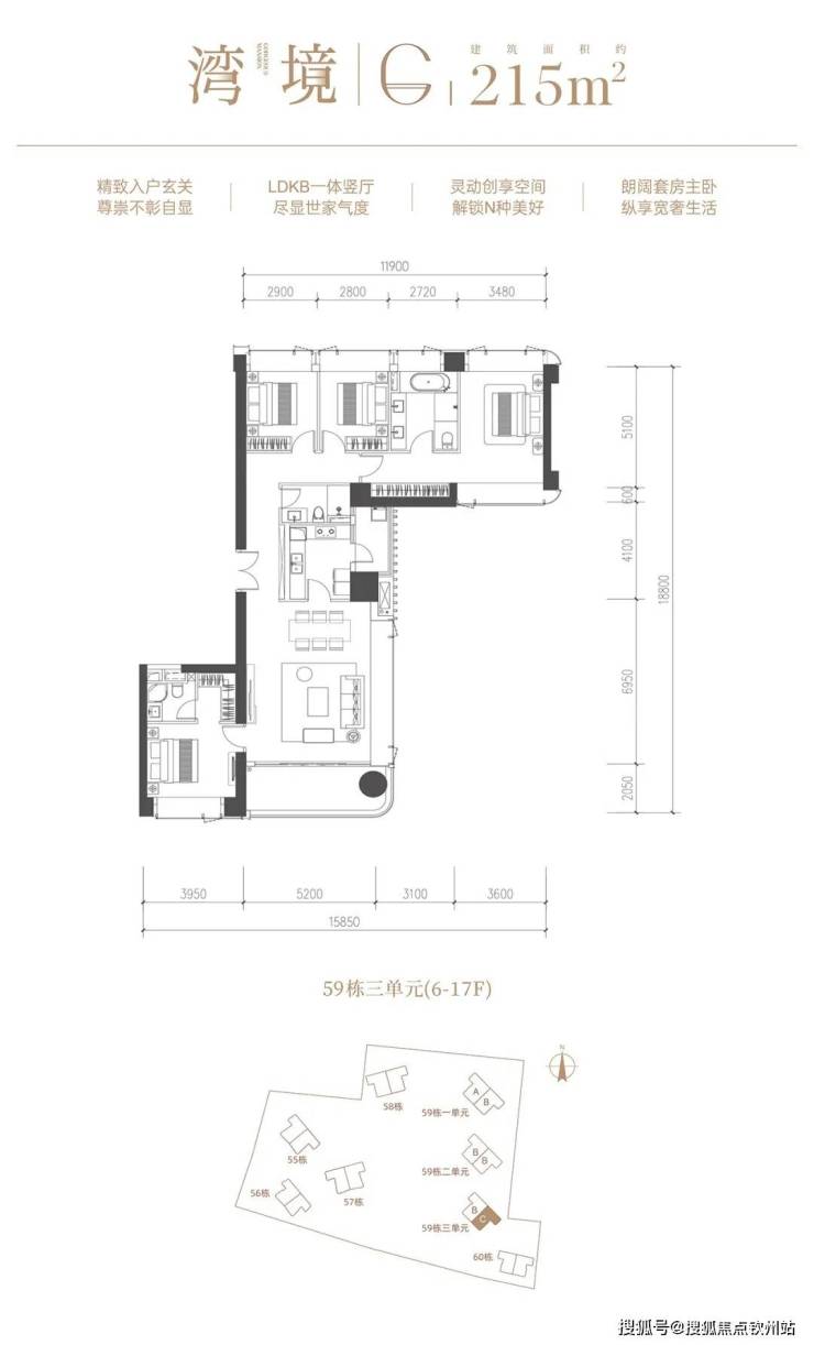 59栋也是前海时代最后的大户型,面积215-255-295㎡大户型,3T2、3.25米层高,定位十分高端纯粹。且位于园林中心,栋栋都有桂湾公园景观,中高层还能看前海湾和城市景观。开盘约88.5折,折后均价约10.43万/㎡,折后总价约2029-3941万!