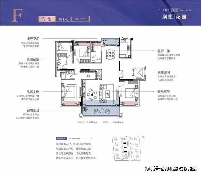 1. 电梯直达入户,利于归家仪式感;全明五室大户型,尊崇墅质人居;