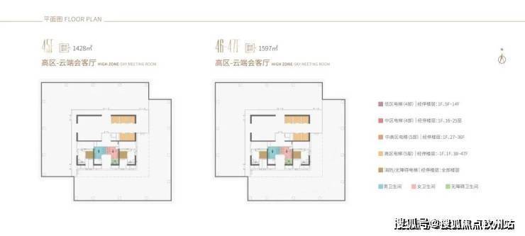 38-44F,是企业会客厅,约338-479㎡,45-47F,约1427-1596㎡(整层)