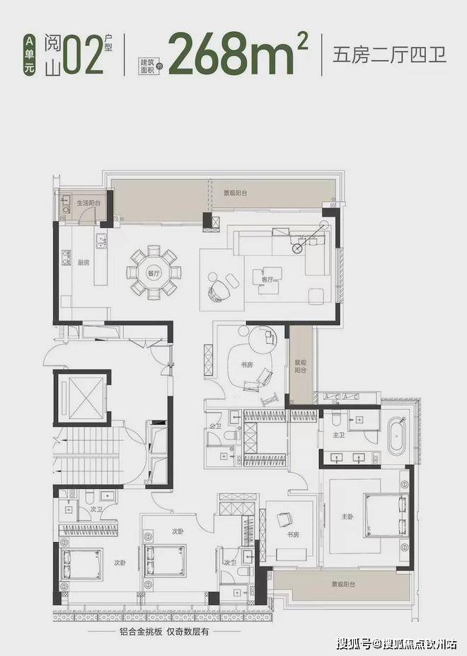 193-204㎡的户型,可以说是建面约268㎡的缩小版。