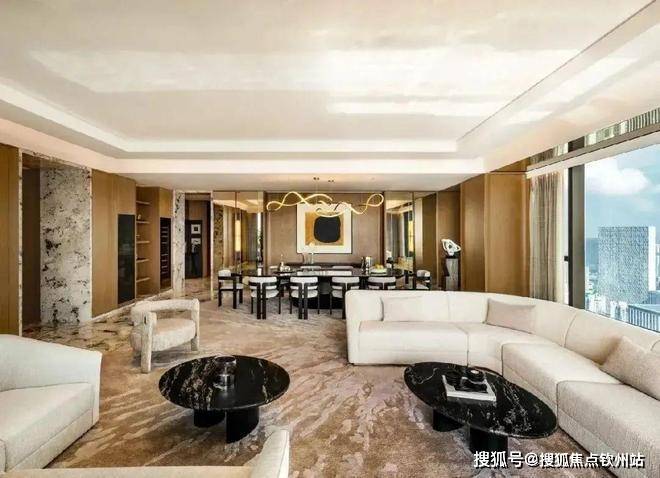 全球多达6种的稀贵奢石装点着室内,大面积、流动纹路的天然石材运用更是给人“一入户就震撼”的视觉冲击。土耳其古堡灰、意大利威尼斯棕、意大利鱼肚金和迪奥金……让室内成为一座奢石博物馆。