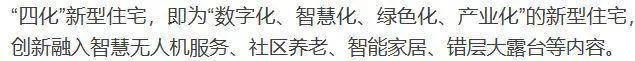 “四化”新型住宅,即为“数字化、智慧化、绿色化、产业化”的新型住宅,创新融入智慧无人机服务、社区养老、智能家居、错层大露台等内容。