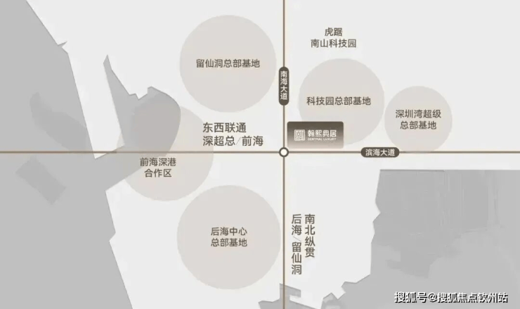 贵脉源点丨全维中心的奢居地标 翰熙典居占位深圳经济命脉滨海大道与南北科创主轴南海大道交汇处十字轴心。集萃城市区位、科创、人文、TOD四大中心源点。依托两大科技园、四大总部基地,集总部经济+全球科创中心价值,坐享区域发展利好。