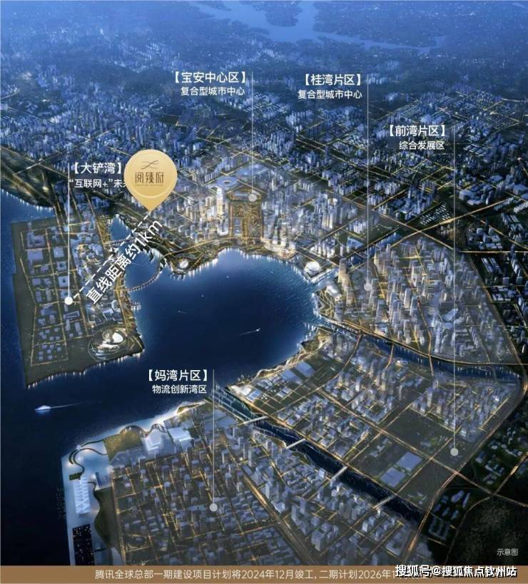 腾讯全球总部,择址宝中大铲湾,总投资约370亿。未来将有约9.1万名通信技术精英+6.3万人以上精英人才,助力片区价值腾飞。
