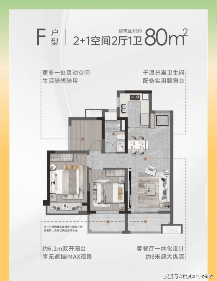 89㎡3房:双飘窗主卧+6.4米景观阳台,小户型也有大宅体验。