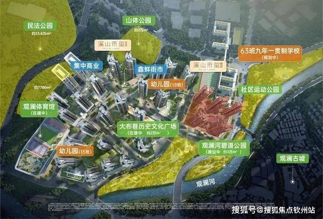 金光华溪山禾玺二期总建面约120万㎡,集住宅、商业、教育、文体和生态环境于一体。首发地块溪山禾玺首府已入市,454户建面约72-95㎡3-4房,备案均价约4.4万/㎡;此项目也还有大量的住宅货源,并与观城项目邻近。